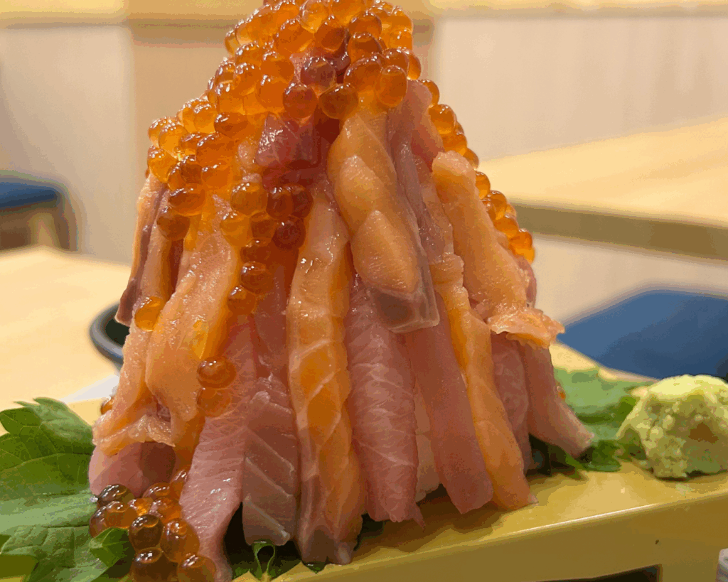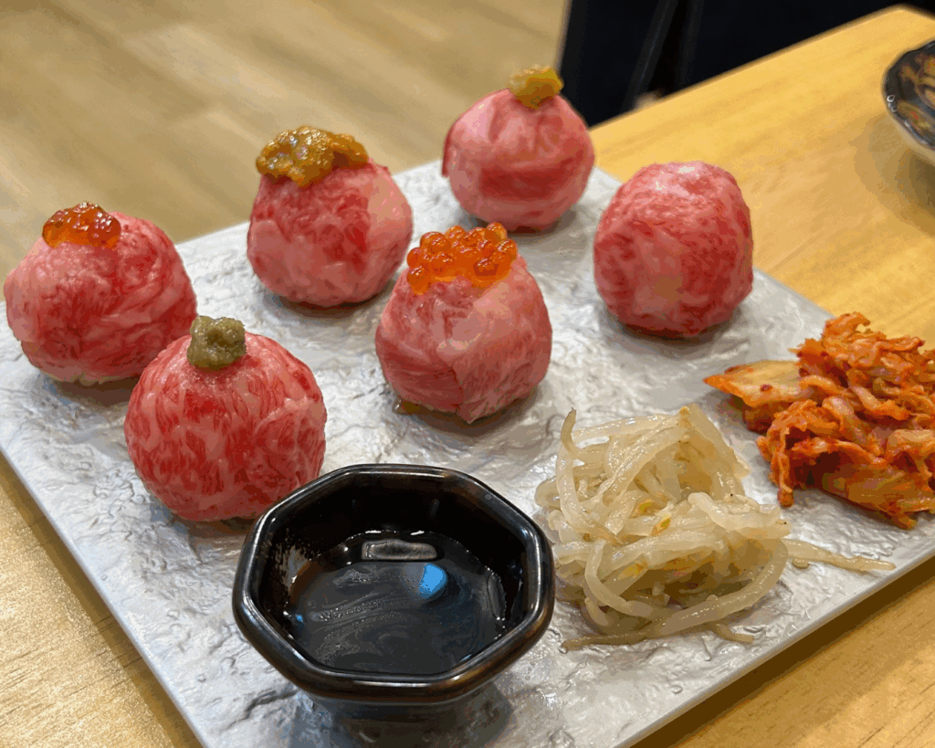 当店の看板メニューは、A5ランクの国産黒毛和牛を贅沢に使用した一口サイズの「肉手毬寿司」です。お客様の目の前で豪快に炙るパフォーマンスは、食欲をそそる香ばしい香りと共に視覚でも楽しませてくれます。さらに、新鮮な海鮮がなだれのように溢れ出す「むになだれ」もSNS映えすると人気を集め、見た目にも華やかな逸品が食卓を彩ります。これら名物料理のほか、「トロたく盛り」や「唐揚げ」といった居酒屋の定番から、「ネギ塩ホルモンに雑炊」のような〆まで、幅広いおつまみメニューが充実しています。
