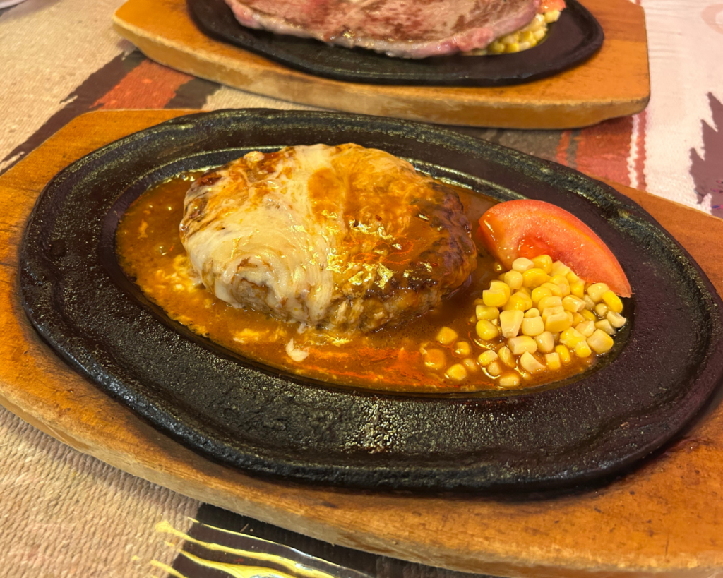 またチーズハンバーグも、お肉がぎゅっと詰まっていて、チーズやソースと合わせてジューシーに味わえます。