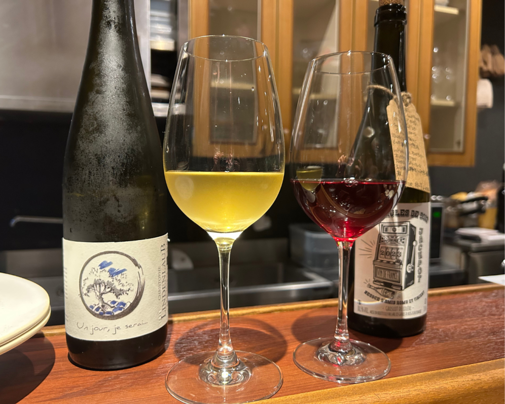 こちらでぜひ味わっていただきたいのが、ワインの魅力を引き立てる手作りのビストロ料理です。特に、肉の旨味が凝縮された「鹿もも肉とピスタチオのパテ」や、季節ごとに変わる「ホワイトアスパラガス ヴァンブランソース」などは、そのボリュームとクオリティの高さで多くのリピーターを惹きつけています。ワインはこだわりの自然派を中心に取り揃えており、店主が丁寧にそれぞれの個性を説明してくれるため、その日の気分にぴったりの一杯に出会えます。