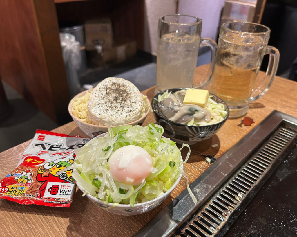まず味わっていただきたいのが、店名にも掲げられた「だし」が決め手のもんじゃ焼きです。定番はもちろん、「海老たっぷりペペロンチーノもんじゃ」や、濃厚な味わいの「イカ墨もんじゃ」など、変わり種メニューの豊富さに驚かされます。さらに、自家製タレで楽しむ「プリプリ食感のホルモン焼き」や、チーズトッピング無料(一部条件あり)のサービスなど、お酒が進む仕掛けも満載。